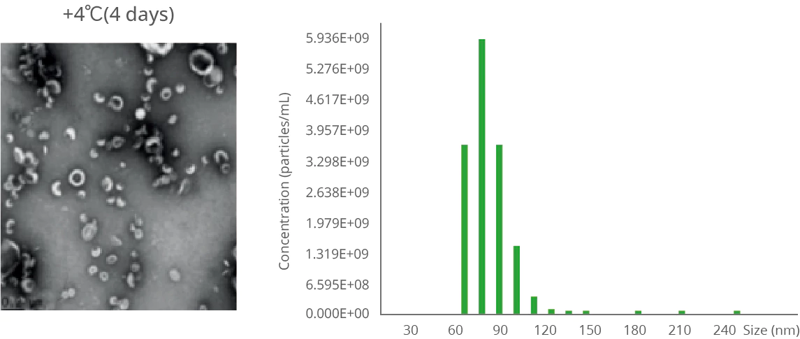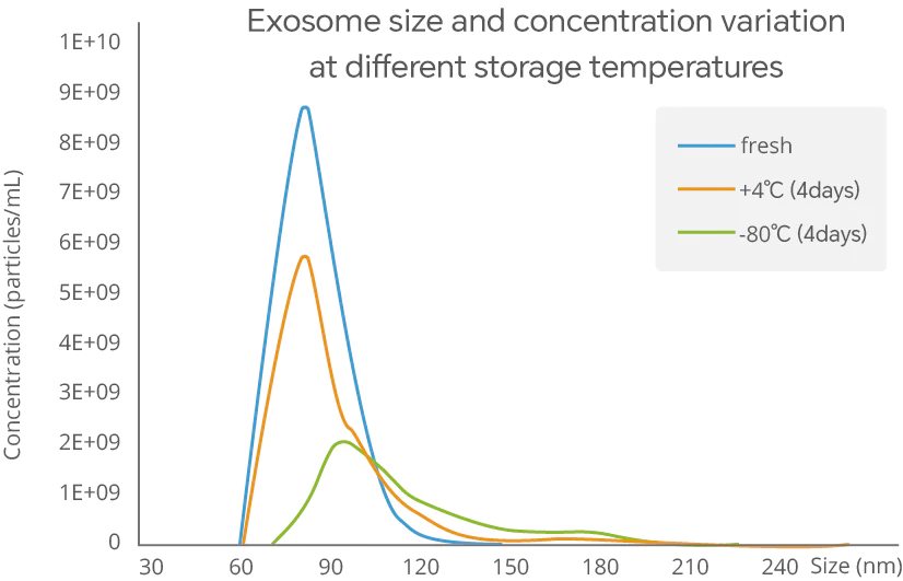 Extracted exosome samples should be stored at 4°C for short-term preservation and at -80°C for long-term storage. However, regardless of the storage conditions, exosome samples undergo varying degrees of change. Researchers conducted a comparative study to analyze changes in newly extracted exosomes after 4 days of storage at 4°C and -80°C. The results showed that after 4 days at 4°C, the particle size of the exosomes changed only slightly, whereas after 4 days at -80°C, the particle size and morphology of the exosomes changed significantly, with a marked increase in larger particles. The experiment was repeated using a NanoCoulter particle analyzer, and the measured data matched previous findings precisely, demonstrating that the NanoCoulter particle analyzer can accurately monitor the impact of storage temperature on exosomes.