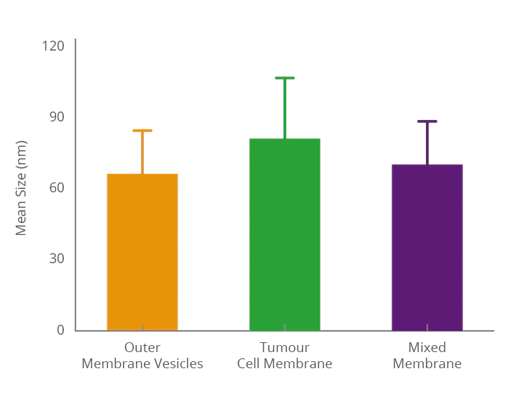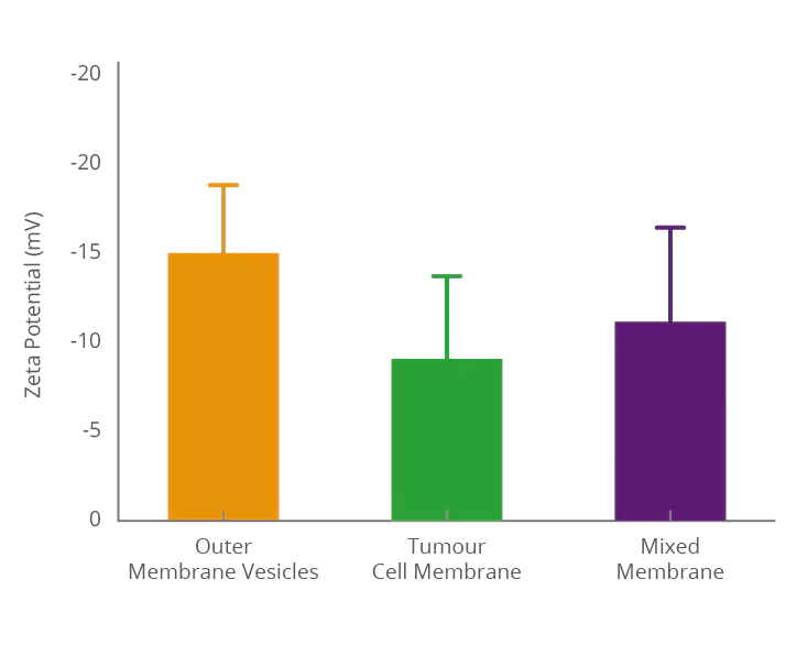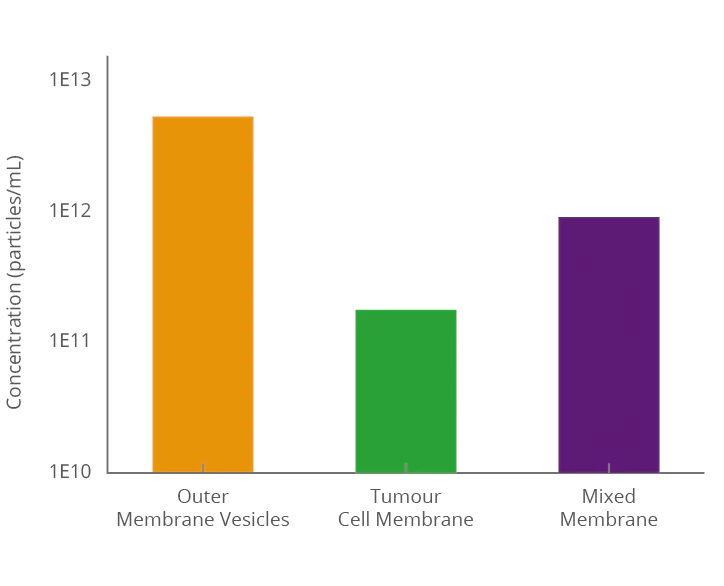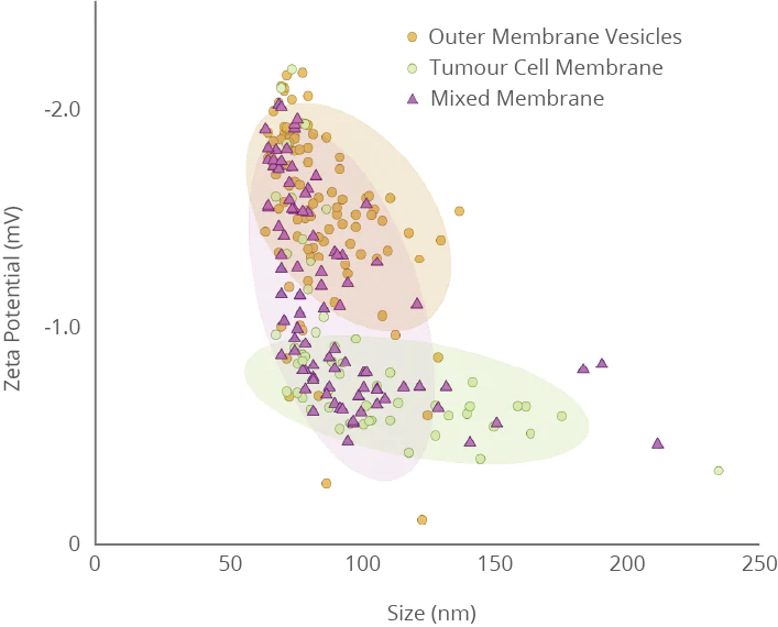 Fusing bacterial outer membrane vesicles with cancer cell exosome membranes enables the hybrid vesicles to simultaneously inherit biological functions from both bacterial and cancer cell membranes, creating a multifunctional delivery system. Precise characterization of the fused exosomes using NanoCoulter™ allows clear visualization of key parameters such as particle size distribution, concentration, and zeta potential, thereby confirming membrane fusion efficiency and providing reliable data support for the development of targeted drug or vaccine carriers.